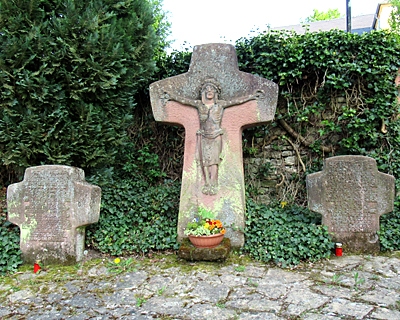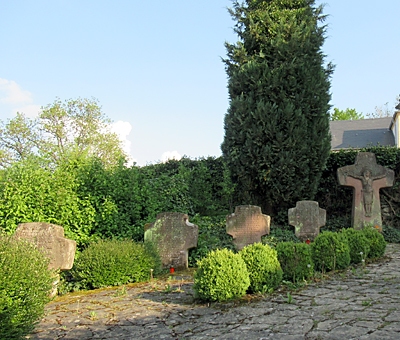 Der Friedhof zeichnet sich dadurch aus, daß die meisten - auch seiner jüngeren - Grabkreuze und Denkmäler nicht der Serienfabrikation entstammen, sondern Bildhauerarbeiten aus rotem Sandstein sind. Er gilt so als einer der schönsten im Bitburger Land. [1]