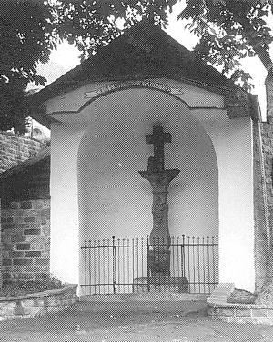 Eine große Rundbogennische wird von einem vorspringenden Flachgiebel mit dreiseitig abgewalmtem Schieferdach gerahmt. Auf der Giebelfront befindet sich die Inschrift Crux S. Missionis ab anno 1733. Sie wurde bei der letzten Restaurierung 1986/87 aufgedeckt und besagt, daß der Kapellenbau zur Aufnahme eines Missionskreuzes errichtet wurde. Er enthält ein großes Schaftkreuz aus rotem Sandstein, das inschriftlich ins Jahr 1724 datiert ist. Sein Reliefschmuck (Engelsköpfe, Fruchtgehänge und Ornamente) zeigt auch das plastische Relief eines Heiligen mit Buch. Vor dem Kruzifix kniet eine Maria Magdalena; andere ursprünglich sicher vorhandene Assistenzfiguren fehlen heute. [1]