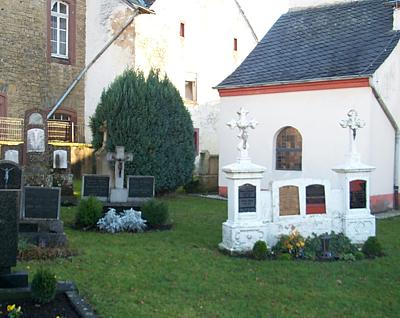 Beachtung verdient auch der von einer hohen Natursteinmauer umgebene intakte Kirchhof. Weil seit 1965 ein neuer Friedhof am Ortsrand belegt wird, befinden sich auf dem alten Kirchhof überwiegend ältere Grabdenkmäler; diejenigen aus der Zeit der Jahrhundertwende sind teilweise von beachtlicher Qualität. [1]