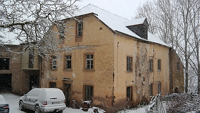 Altes Wohnhaus mit Mühlenteil. Westlich der beiden am Mühlgraben gelegenen Mühlen; verputzter Schieferbruchsteinbau, der Wohnhaus und Mühle unter einem Dach vereinigt, die weiteren Gebäude von Anfang des 20. Jahrhunderts bzw. neu. Die dem Aussehen nach aus dem 19. Jahrhundert stammende zweigeschossigen Gebäude über fast quadratischem Grundriß wurde später, erkennbar am Mauerwerk, um einen Giebel und um einen Kniestock erhöht. Am Wohnteil haben sich Fensterläden und Fenster im Obergeschoß sowie die innere Aufteilung entlang des mittelerschließenden Ganges erhalten. Die zuletzt 1929 erneuerte Technik des Mahlwerkes ist gänzlich erhalten, das eiserne Mühlrad von 4,8 m Durchmesser in einem erneuerten Pultdachanbau. Von großer Seltenheit im Kreisgebiet ist der betriebsbereite Zustand der technischen Anlage, die als eine der letzten ihrer Art ein technisches Denkmal darstellt. Zugleich hat die Nachfolgerin die im 16. Jahrhundert genannten alten Mühle als dem Kloster Sankt Maximin gehörende Bannmühle auch ortsgeschichtliche Bedeutung. [2]