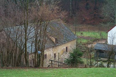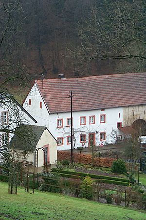 Mühlengebäude: Langgestreckter, zweigeschossiger Bau aus mehreren, nicht eindeutig zu trennenden Bauphasen. Unregelmäßig verteilte, meist gekuppelte Rechteckfenster, die gekehlten Einfassungen fast alle erneuert. Im Sturz eines alten Fensters auf der Rückseite die Jahreszahl 1580. Das Innere verändert, von der alten Mühleneinrichtung nur noch letzte Reste erhalten. Östliches Quereinhaus: Über der profilierten Türeinfassung des Wohnteils Inschriftstein mit der Jahreszahl 1793. Die beiden linken Achsen gehören möglicherweise einer späteren Verlängerung an. Der Wirtschaftsteil trat erst um die Jahrhundertwende an die Stelle eines älteren Vorgängers.