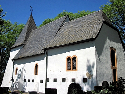 Wo jetzt die Kirche steht, mag ehedem eine römische Kultstätte gestanden haben oder eine römische Villa mit Badegelegenheit am Maar. Ihre Fundamente weisen deutlich römische Spuren auf. Sicher gehört sie zu den ältesten christlichen Kirchen der Eifel.
