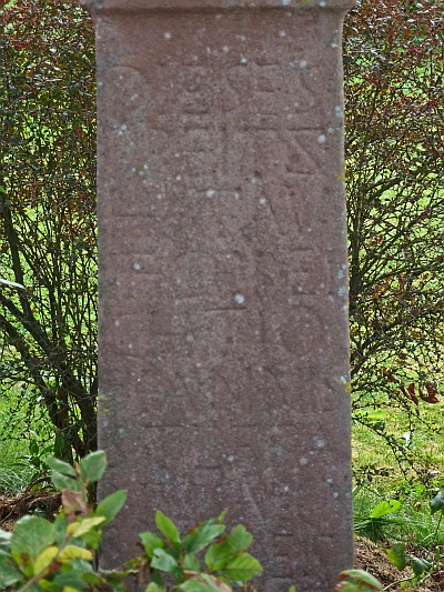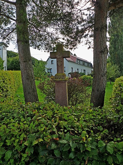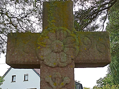 Gut erhaltenes einfaches Schaftkreuz von 1696. Die Vorderseite des glatten, nur ganz leicht nach oben verjüngten Schafts nimmt vollständig eine lange Inschrift ein, die als Errichter IOHANNES STEFFANUS VON BEDESHEIM nennt. Das Abschlußkreuz ohne Korpus, am Balkenschnittpunkt eine Blütenrosette, darunter ein Herz mit drei Nägeln, auf dem Querbalken die Jahreszahl. [1]