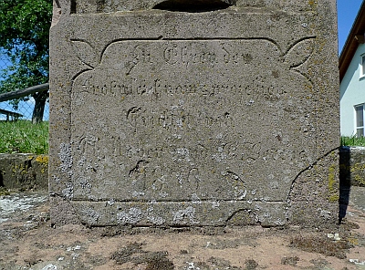 Hervorragend erhaltenes neugotisches Sockelkreuz, laut Inschrift zu Ehren der Frohnleichnamsprozession Erichtet von Ch. Nober und E. Berens 1870.