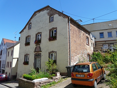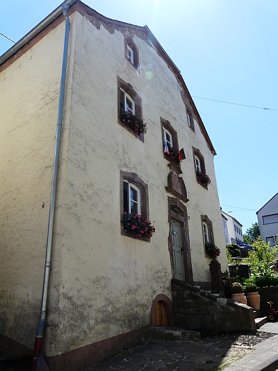 Im rückwärtigen Teil der linken Traufwand eine breit abgefaste, segmentbogige Türeinfassung mit Blattwerk in den Bogenzwickeln, wohl aus dem Anfang des 17. Jahrhunderts. Die Straßenfassade symmetrisch in drei Achsen gegliedert, große Segmentbogenfenster und ein ebenfalls segmentbogiges, reich profiliertes Oberlichtportal. Über diesem eine gerade Verdachung mit rundbogigem Sprenggiebel, der eine Wappentafel des Kanonikers und Kantors an der Stiftskirche Matthias Vitalis Ricardy umschließt. Der in der verwitterten Beischrift enthaltene Hinweis auf Ricardys Funktion als: Pfarrer von Sankt Maximin grenzt die Bauzeit auf die Jahre zwischen 1766 und 1770 ein. [1]