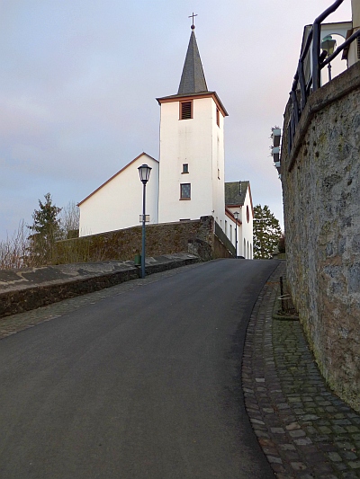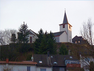 Evangelische Kirche 1867. Erste evangelische Kirche im Kreis Daun. 1944 teilzerstört - 1949 Wiederaufbau. [1]