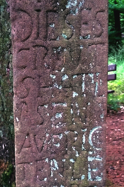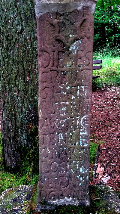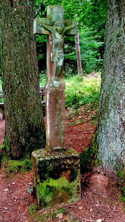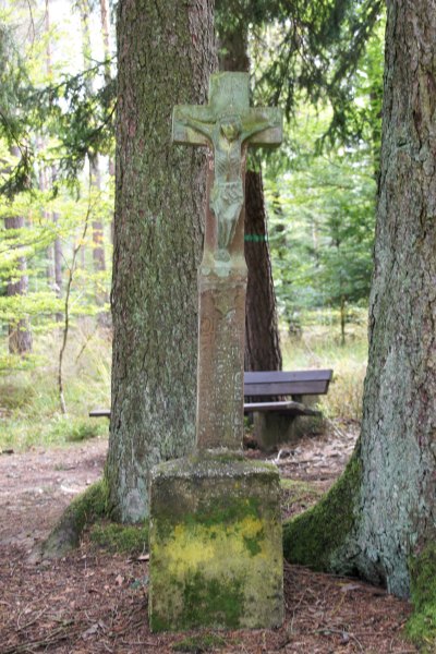 An einer Waldschneise östlich der Bildchenkapelle: stark beschädigtes, 1767 durch LEONART LOSKIL SEND UND GRUNDGERICHTSSCHEFFEN IN SPEICHER errichtet. Vom Schaft nur noch das mittlere Stück mit der ersten Hälfte der Inschrift erhalten, Kapitell und Sockel fehlen. Großes, zugehöriges Abschlußkreuz. [1]