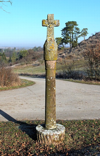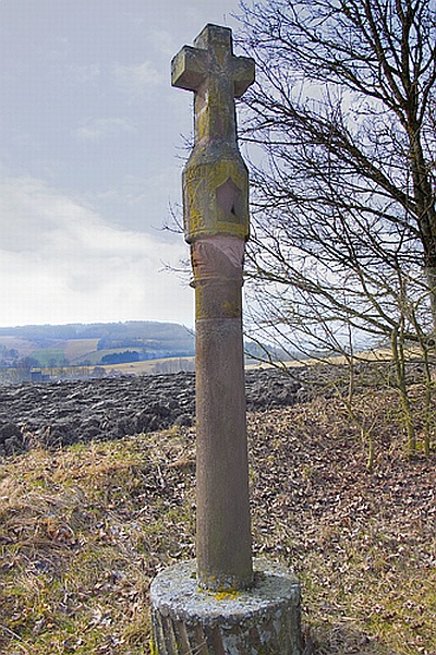 Das 1630 datierte Schaftkreuz in der Verlängerung der Talstraße nordöstlich des Langerthofs, volkstümlich als Braut- oder Hexenkreuz bezeichnet, ist um 1990 aus seinen Fragmenten neu zusammengesetzt und wieder aufgestellt worden. Der als Rundpfeiler gestaltete Schaft steckt in einem trommelförmigen Einlaßstein mit schräg angeordneten Kanneluren. Auf dem mit Blattwerk verzierten Kapitell sitzt ein runder Kreuzfuß mit flacher, kielbogig schließender Nische. Seine Umschrift überliefert in Spiegelschrift den Namen des Stifters GERTRAUDEN PETER VON WASSENFORF. Das Abschlußkreuz zeigt auf der Vorderseite einen stark ergänzten Korpus, auf der Rückseite das IHS-Monogramm und ein Herz Jesu. [1]