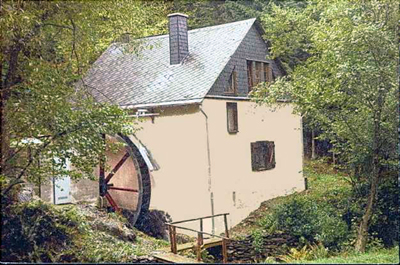 Die Mühlen des vorderen Hunsrücks ähneln so gar nicht den stattlichen Gebäuden, an die man spontan denkt, wenn man den Begriff Mühle hört. Sie sind kleine, unscheinbare Zweckbauten, die abseits der Straße liegen. Wegen ihrer geringen Abmessungen sind sie für heutige Bedürfnisse unbrauchbar und meist verfallen oder ganz verschwunden. Dabei handelt es sich bei diesen Mühlen um die bauliche Überreste eines kulturellen Phänomens, das ziemlich einmalig ist. Früher sicherten sich die Territorialherren wie z.B. die Trierer Erzbischöfe im Verlauf des 13. und 14. Jahrhunderts die ursprünglich dem König zustehenden Regalien, also Hoheitsrechte auf Nutzung z.B. von Berg, Wasser und Jagd. Hierzu gehörte auch das Mühlenregal also das Recht der Landesherren, als einzige auf ihrem Gebiet Mühlen zu bauen und zu betreiben. Im Gegensatz hierzu handelt es sich bei den für bestimmte Gebiete des Hunsrücks typischen Mühlen um Genossenschaftsmühlen, die von den Bauern in eigener Regie betrieben wurden. Sie verdanken ihr Entstehen einer historischen Entwicklung.