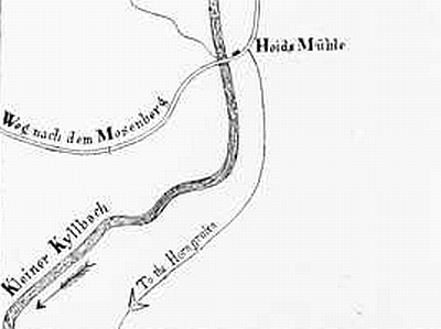 der Kleinen Kyll. 1844 war die Mühle schon in Betrieb. 1885 wurde die Mühle von Johann Stadtfeld erworben, der neben der Mühle auch Landwirtschaft betrieb. Um 1900 konnte pro Tag etwa 1 Tonne Getreide gemahlen werden, zu wenig, um wirtschaftlich zu bestehen. Deshalb wurde neben der Mahlmühle auch eine Sägemühle angeschlossen, die bis 1963 betrieben wurde.