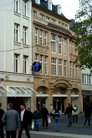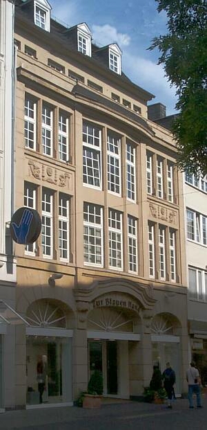 Im Jahre 1797 begründete der Schwarz- und Schönfärbermeister Joh. Nic. Müller in der Weberbachstraße zu Trier eine Färberei. Zur blauen Hand nannte er sein Unternehmen. Der Indigo färbt nicht nur die Wolle, sondern auch die Hand des Färbers unabwaschbar echtblau. Ein Zeichen der Echtheit! Selbstbewußte handwerkliche Tüchtigkeit offenbart sich in der Wahl dieses Zeichens. Das Unternehmen entwickelte sich durch das ganze 19. Jahrhundert hindurch, langsam zunächst, aber stetig. Bald wurde eine Wollgarnspinnerei, dann eine Tuchweberei und eine Tuchhandlung angegliedert. 1914 wurde die Herstellung und der Verkauf fertiger Herren- und Knabenkleidung und der Tuchhandel als das eigentliche Arbeitsfeld der Blauen Hand bestimmt. Seit 1921 arbeitet die Firma in ihrem neuen Geschäftshaus Brotstraße 42.