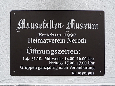 Das Museum präsentiert die verschiedenen Produktionsphasen des Drahtwarengewerbes in Neroth und stellt den gesamten Zeitraum der Gewerbeentwicklung von den 1830er Jahren bis in die 1970er Jahre dar. In den Notzeiten des vorigen Jahrhunderts griff der ärmste Teil der Bevölkerung zur Eigeninitiative und stellte in Heimarbeit die Mausefallen her. Fahrende Händler aus dem Ort sorgten dann im Winterhalbjahr für den Verkauf der Nerother Drahtwaren. Sie wanderten durch ganz Deutschland, um das karge landwirtschaftliche Einkommen der Nerother Bevölkerung aufzubessern.