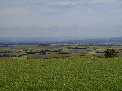 [...] sieht man nach Südosten weit ins Tal eine Vielzahl Dörfer, Felder und Wälder vor sich ausgebreitet. Bis hin zur Klausener Kirche (22 Kilometer) reicht unser Blick, und weiter rechts kann man am Horizont noch die Hunsrückstraße bei Morbach erkennen. [1]