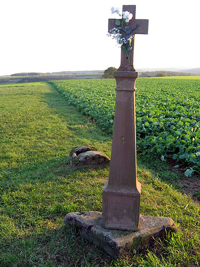 Auf der Höhe zwischen Wilsecker und der Kyll: Schaftkreuz von 1872 (Inschrift) in den Formen des späten 18. Jahrhunderts, möglicherweise als Kopie eines älteren Kreuzes gefertigt. Diesem Kreuz könnte der hinter dem heutigen gelegene, halb walzenförmiger Stein mit rechteckiger Eintiefung als Fundament gedient haben. [1]
