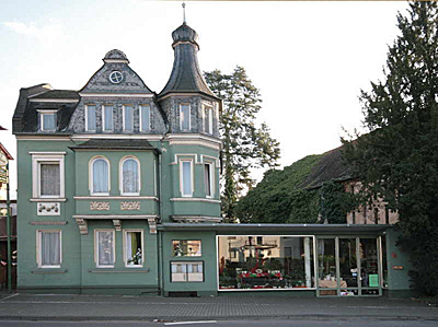 Als Wohnhaus 1904 / 05 nach Plänen des Architekten Jakob Marschall unter freier Verwendung historisierender Baudetails errichtet. Zweigeschossiger Bau mit Putzquaderung. Der Eckturm mit geschweiftem Helm markiert den Beginn der Friedrichstraße. Die Fassade mit geschweiftem, verschieferten Knickgiebel und breitem Erker im Obergeschoss ist auch optischer Bezugspunkt für die Kalkturmstraße. Der Ausbau des Blumenladens beeinträchtigt die Ansicht erheblich. [1]