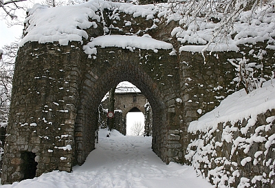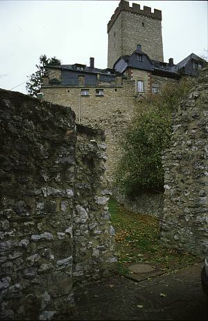 Reste der mittelalterlichen Burg, seit 1682 Ruine, in mehreren Terrassen ansteigende Anlage, 12. bis 16. Jahrhundert, romanischer Bergfried. [1]
