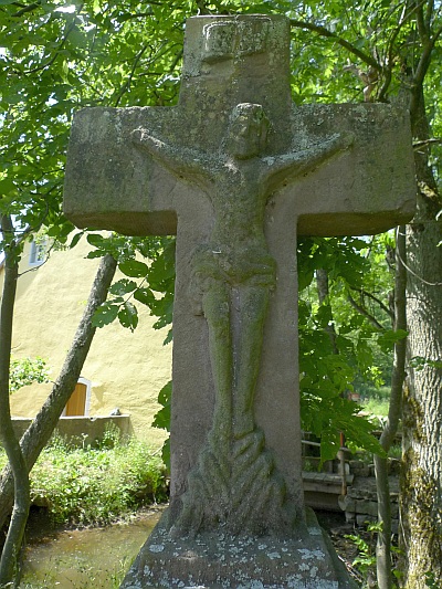 Beim Wehr des Mühlengrabens steht ein 1760 datiertes Schaftkreuz, dessen Schaft aus einem profilierten Sockelstein herauswächst und mit einem doppelten Abschlußprofil endet. Das aufgesetzte Kruzifix trägt eine durch Verwitterung zusammenhanglos gewordene Inschrift auf dem Balken. [1]