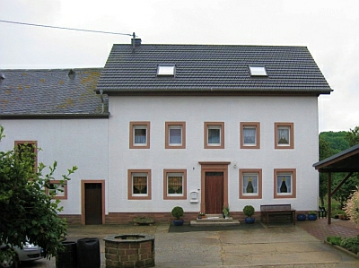 Der Sturz des Wohnhauses ist auf das Jahr 1851 datiert und trägt die Initialen MAH. Das Türblatt mit reichem Schnitzwerk aus Eichenholz hat noch das ursprüngliche Kastenschloß mit Beschlag und Türgriff aus Messing.