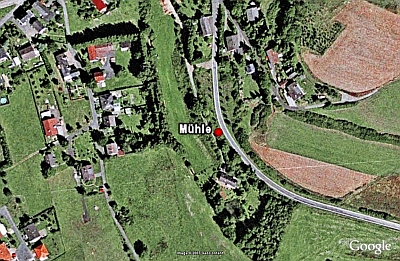 Am Südostausgang von Hörschhausen, östlich des Ueß-Baches. Auf der Tranchot-Karte von 1810 / 11 als Moulin eingetragen. [1]