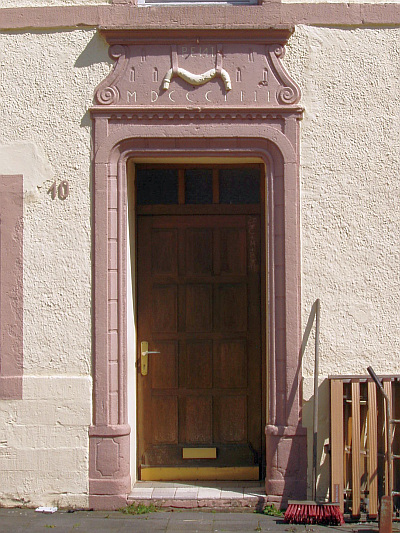 Das stattliche, zweieinhalbgeschossige Wohnhaus gehört zu einem sich auf drei Seiten um einen Hof gruppierenden Anwesen.