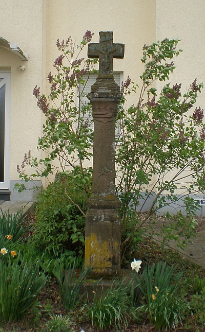 Es wurde aus hellem Sandstein gefertigt. Die Höhe beträgt 1,95m. Stilistisch könnte man dieses Kreuz dem Empirestil zuordnen. Die Schaftvorderseite wurde mit folgender, noch gut zu lesender, Inschrift bedeckt: