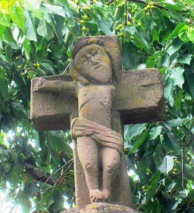 Auf einer früher von alten Linden bestandenen Wiese erhebt sich das sogenannte Laschkreuz, eines der größten und formenreichsten Wegekreuze im Kreisgebiet. Der in einem mächtigen Einlassstein stehende Schaft trägt ein Köpfchen mit Akanthusblättern. Der von einer Trommel gebildete Kreuzfuß zeigt einen Adoranten. Der Inschrift auf den Wellenbändern ist zu entnehmen, dass GIERLICH VA(n) BICK(endorf) das Kreuz zu Ehren Gottes, der Gottesmutter und aller Heiligen hat errichten lassen. Die gebrochene Oberkante des Zylinders überliefert den Namen des Steinmetzen M.THOENIS VA(n) WASSENDORF (= Wißmannsdorf). Das Abschlusskreuz mit volkstümlich schlichtem, weit vortretendem Korpus ist auf der Rückseite auf 1579 datiert. [1]